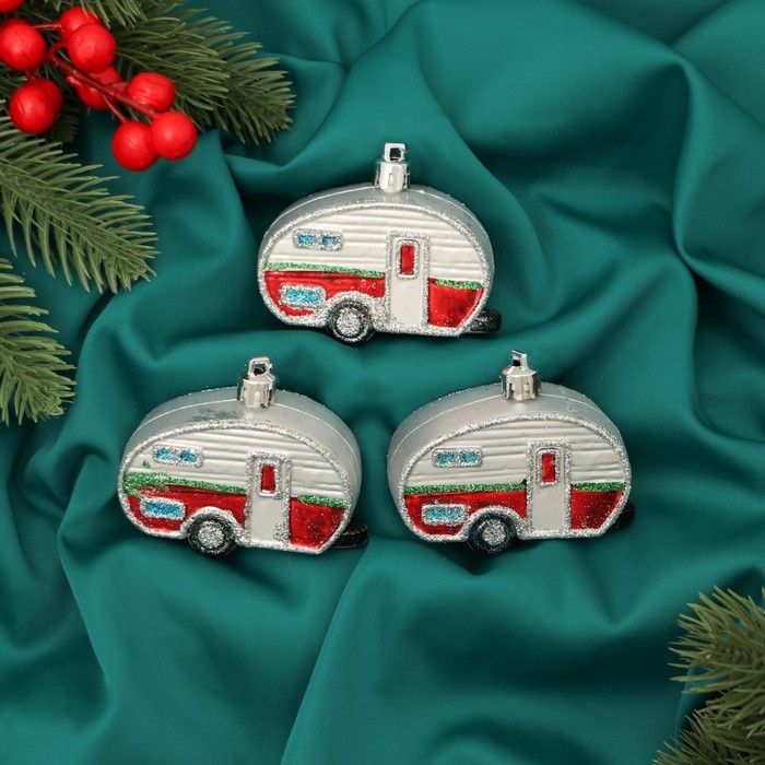 Набор украшений пластик 3 шт "Фургончики" 4х7 см, красный
