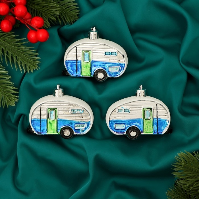 Набор украшений пластик 3 шт "Фургончики" 4х7 см, синий