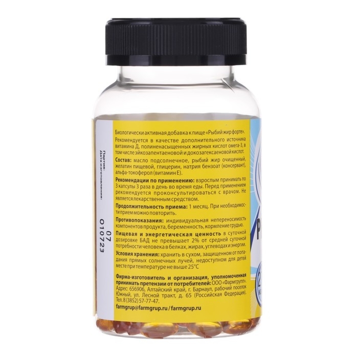 Рыбий жир форте. Рекомендуется в качестве дополнительного источника витамина Д, полиненасыщенных жирных кислот Омега-3. Витамин Д снижает нервную возбудимость, склонность к судорогам икроножных мышц, способствует проникновению кальция и фосфора в клетки. Рыбий жир - основной источник полиненасыщенных кислот типа Омега-3, хронический дефицит которых повышает онкологический риск. Эти кислоты предупреждают развитие сердечно-сосудистых заболеваний, уменьшают количество вредного холестерина и тем самым снижают риск атеросклероза, улучшают кровообращение, уменьшают тромбообразование, благотворно действуют на работу сердца, препятствуют возникновению и развитию аритмии.