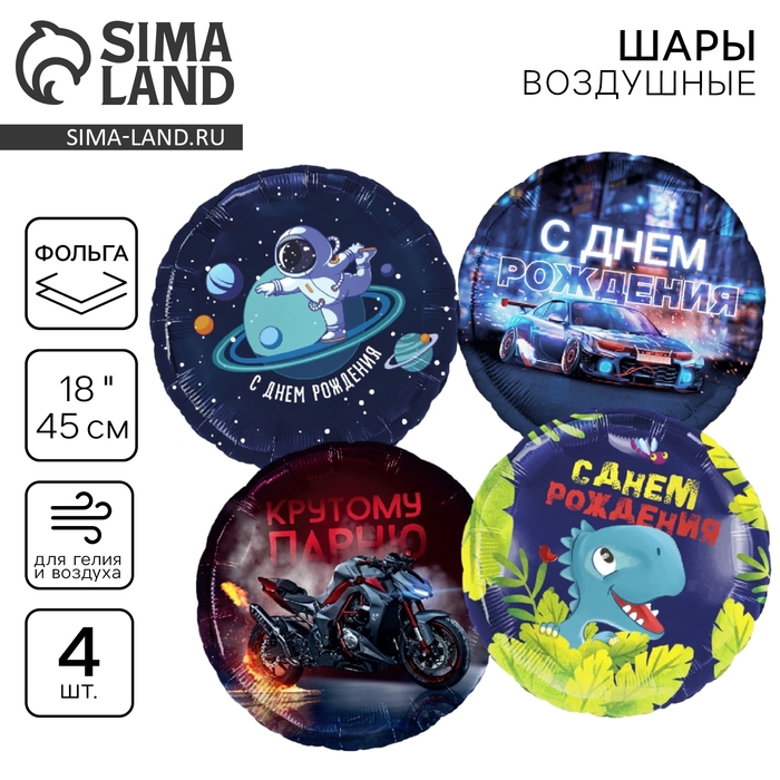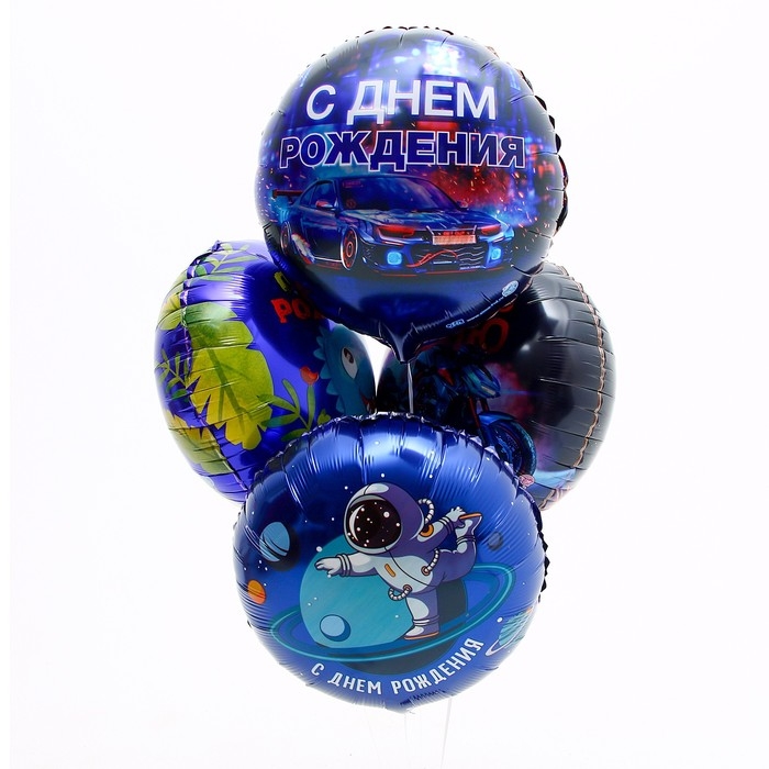 Набор воздушных шаров «С днём рождения», синий, для мальчика, фольга, 4 шт.