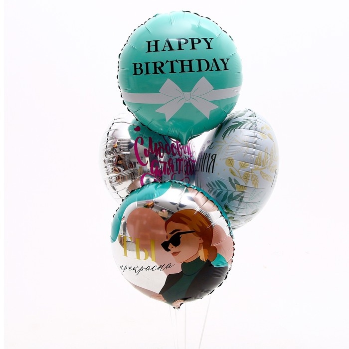Набор воздушных шаров «С днём рождения», мятный, для девушки, фольга, 4 шт.