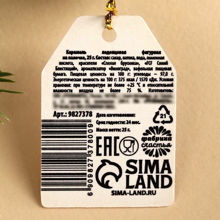 Состав: сахар, патока, вода, лимонная кислота, краситель "Спелая брусника", "FCF Синий Блестящий" ароматизатор "Виноград", вафельная пищевая бумага.