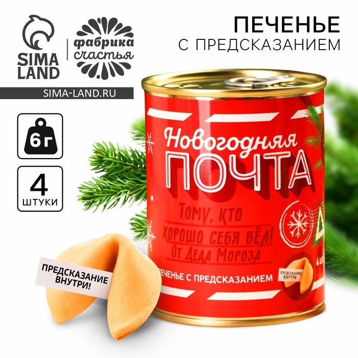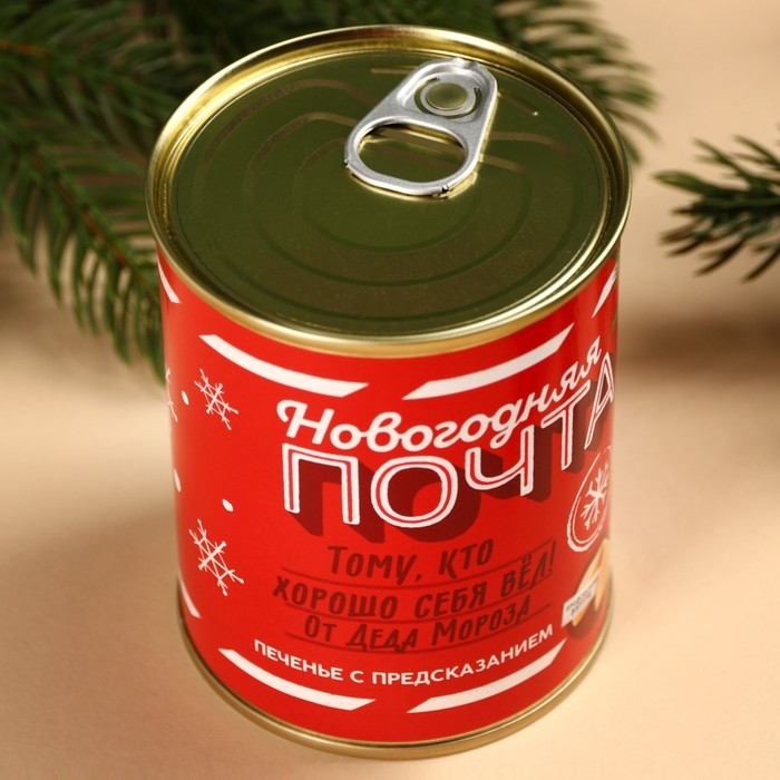 Печенье с предсказаниями в консервной банке «Новогодняя почта»