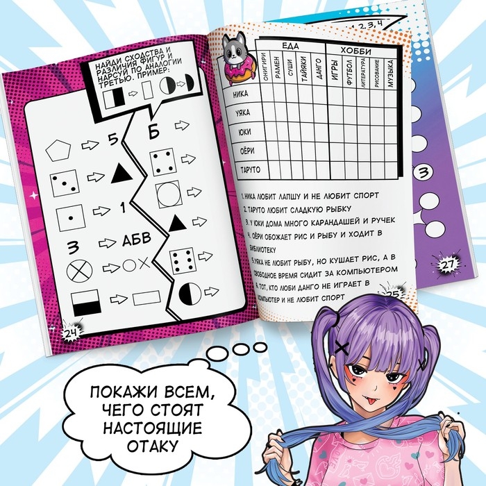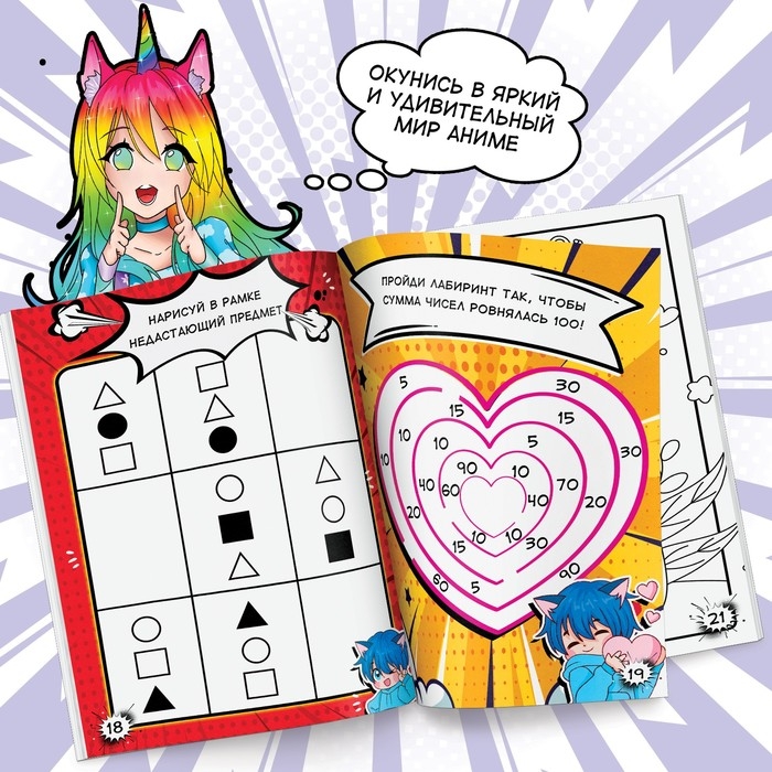 Книга с милым аниме-персонажами и увлекательными заданиями поможет провести время весело и с пользой.