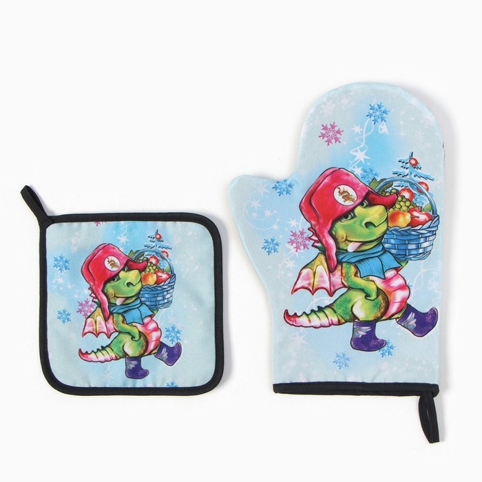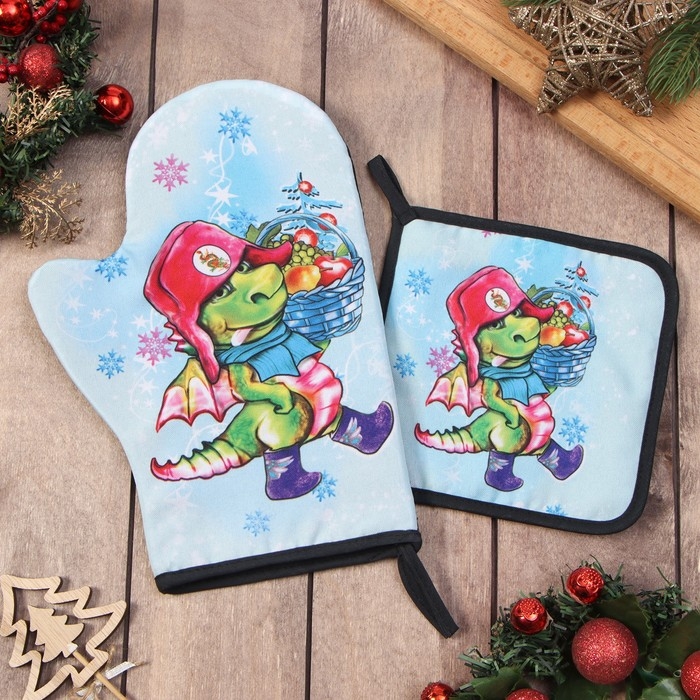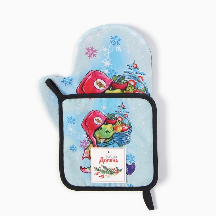 Новый год. Набор кухонный "Зимняя прогулка": варежка 20х28 см, прихватка 17х17 см, 35% хл, 65% пэ, ватин 25