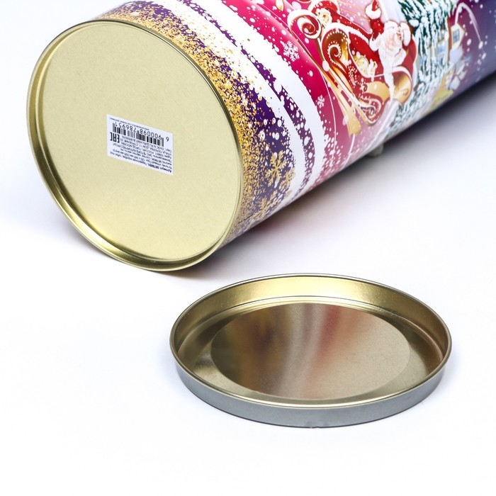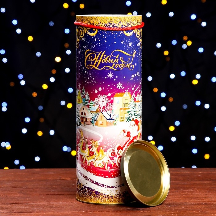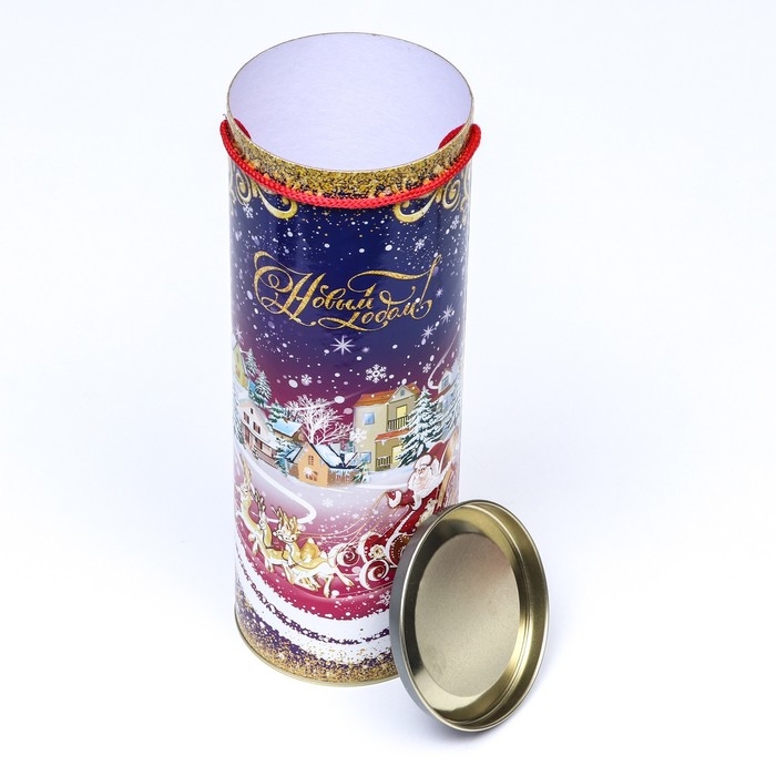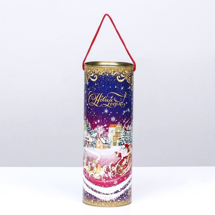 Подарочная туба выполнена из плотного картона и металла. Изделие оформлено красочным изображением. Туба оснащена крышкой. В комплект входит подвесное декоративное украшение.