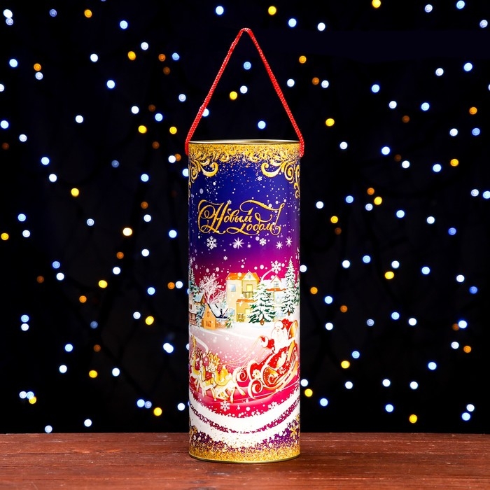 Новый год. Подарочная коробка, тубус под бутылку «Новый Год» 120х345мм (325 мм внутр. высота).