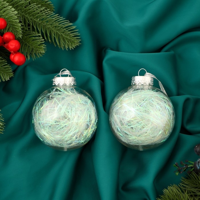 Набор шаров пластик d-8 см, 2 шт "Сияние" перламутр