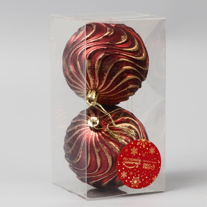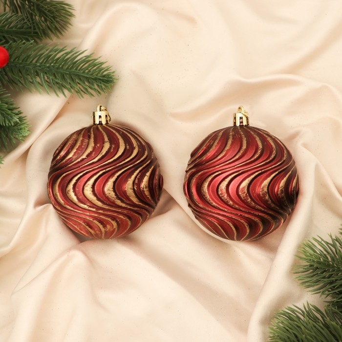 Набор шаров пластик d-8 см, 2 шт "Ширин" волна, бордово-золотой