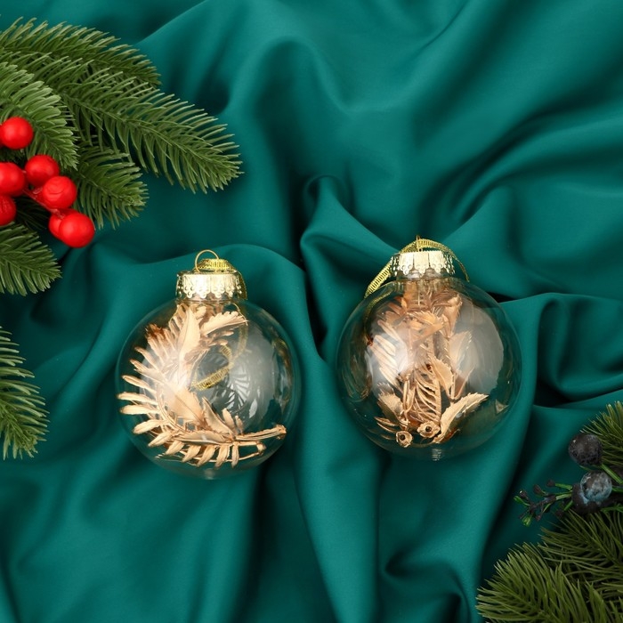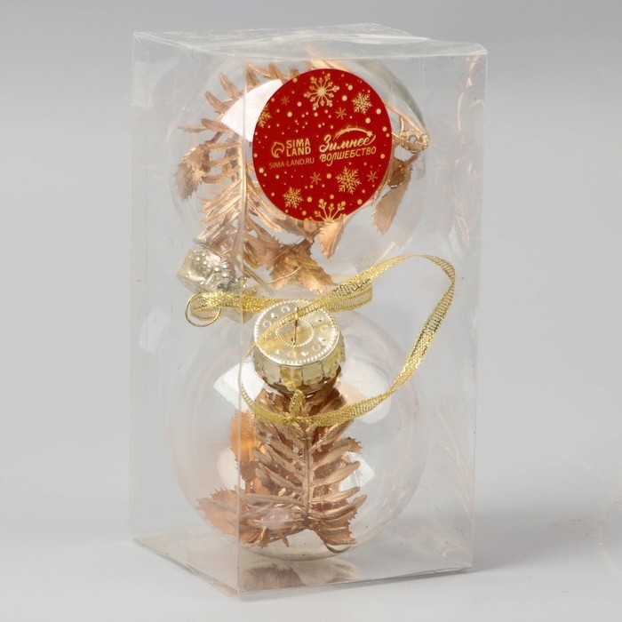Набор шаров пластик d-8 см, 2 шт "Фиеста" листочки, золото