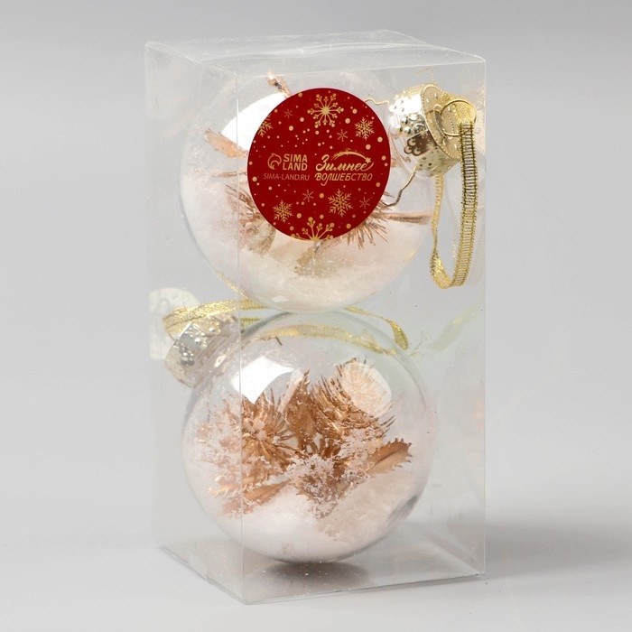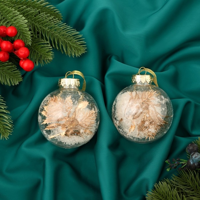 Набор шаров пластик d-8 см, 2 шт "Фиеста" снежок листочки, золото