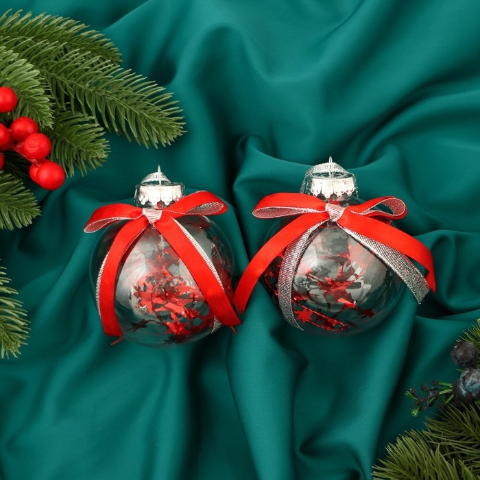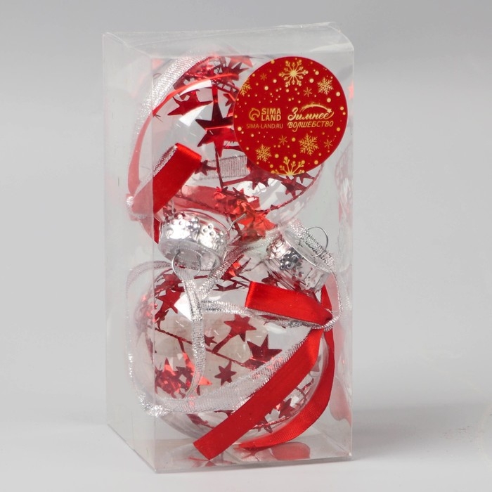 Набор шаров пластик d-8 см, 2 шт "Фиеста" звёзды, красный