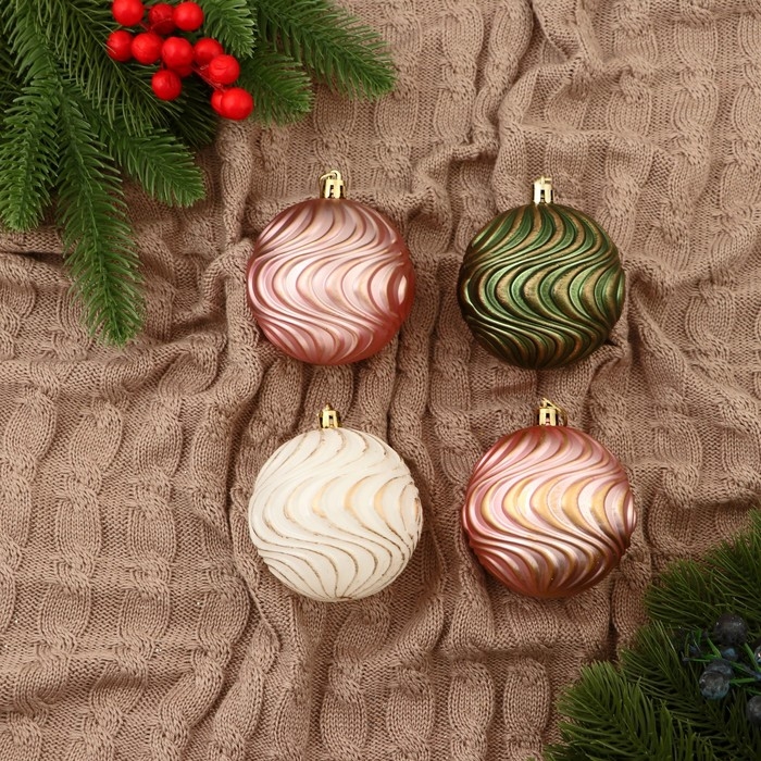 Набор шаров пластик d-8 см, 4 шт "Ширин" волна, микс