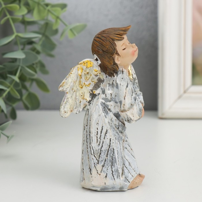 Сувенир полистоун "Ангелочек в платье" золотые крылья 6х5,2х11,3 см