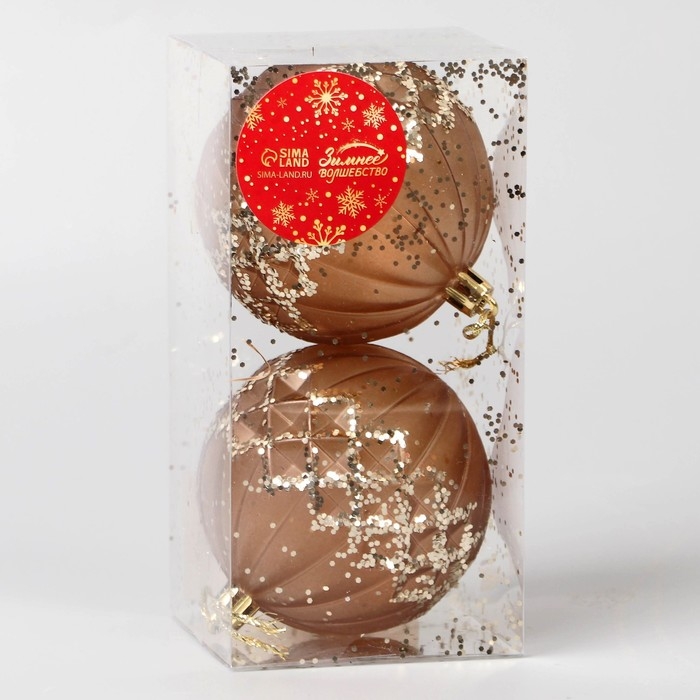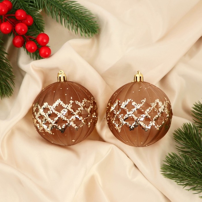 Набор шаров пластик d-8 см, 2 шт "Гэбриэл" сетка, коричневый