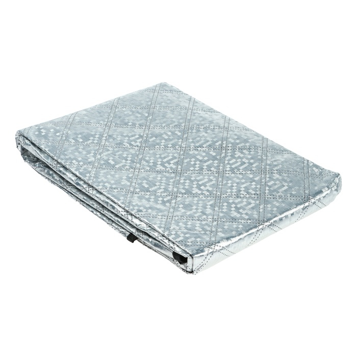 Чехол для лобового стекла и боковых зеркал Cartage представляет собой полотно из фольгированного материала. Серебристая поверхность чехла отражает солнечные лучи, защищая салон и торпеду автомобиля от сильного нагрева. Чехол имеет универсальный размер 140×95 см, за счет этого может быть установлен в автомобиле любой модели и марки.