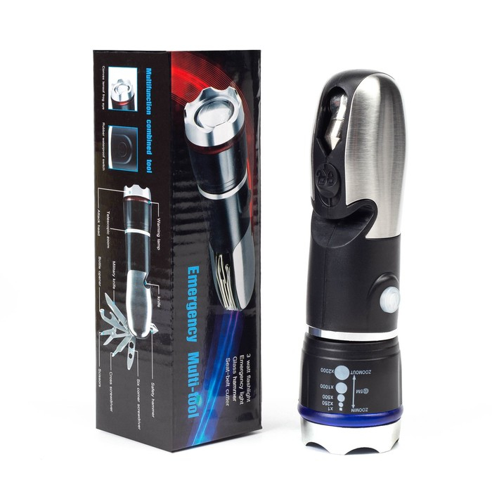 Фонарь многофункциональный мультитул 6 в 1, 3 Вт, 100 лм, OSL, zoom, аварийный молоток, стропорез 44