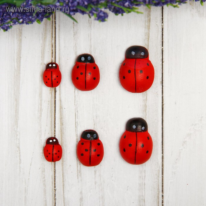 Декоративные наклейки выполнены в виде миниатюрных божьих коровок. Они подойдут для скрапбукинга, создания детских поделок, украшения кухонного интерьера или оформления флористических композиций.