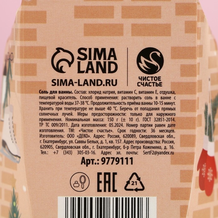 Соль для ванны «С Новым Годом!», 150 г, аромат яблока с корицей, ЧИСТОЕ СЧАСТЬЕ