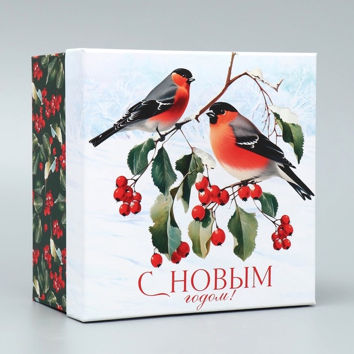 Коробка подарочная «Снегири», 16 х 16 х 9 см, Новый год