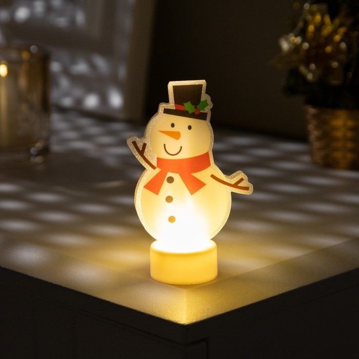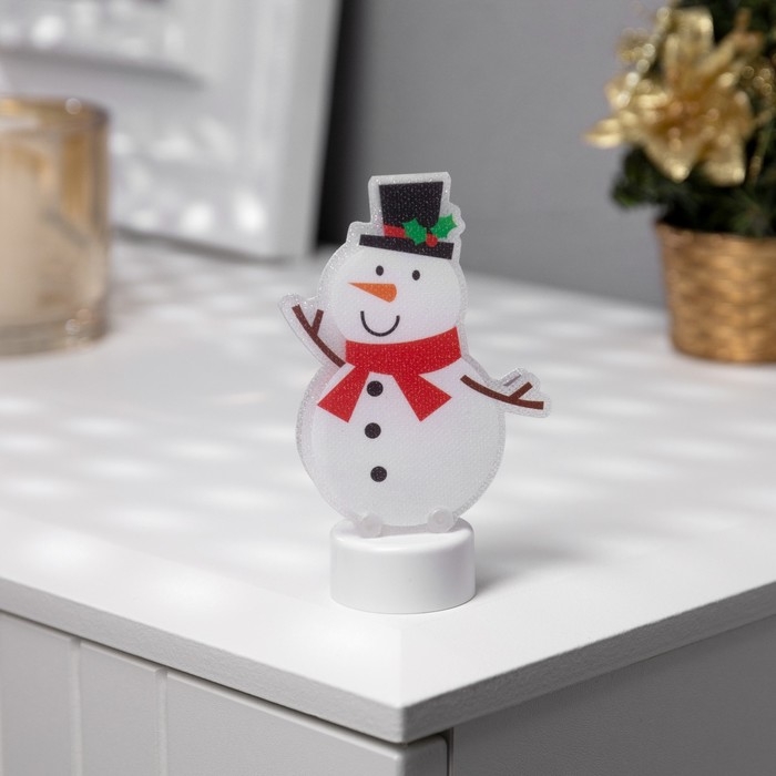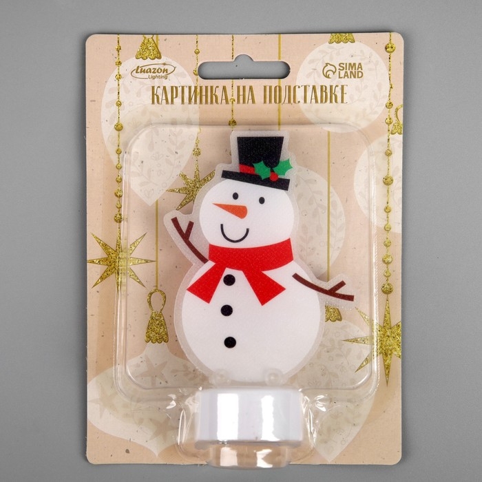 Световая картинка на подставке «Снеговик» 11 см, батарейки, свечение тёплое белое