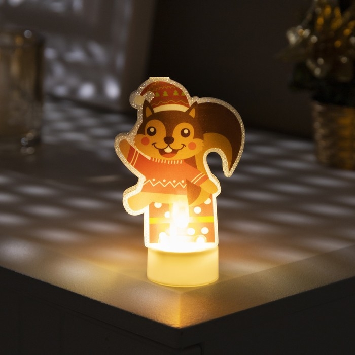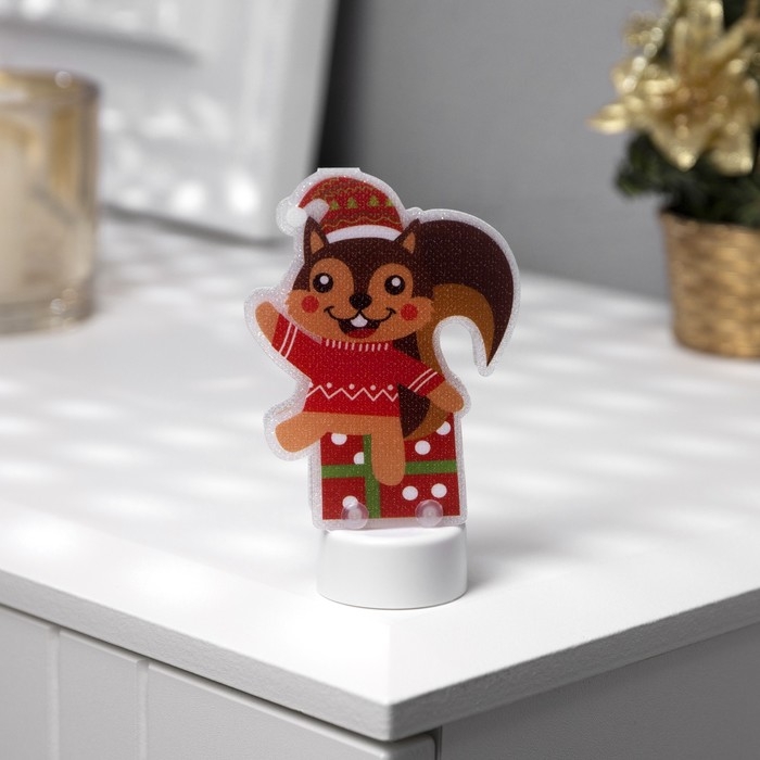 Световая картинка на подставке «Белочка» 11 см, батарейки, свечение тёплое белое