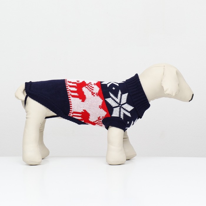 Свитер "Бегущие олени", S (ДС 23, ОШ 23, ОГ 26-45 см), синий
