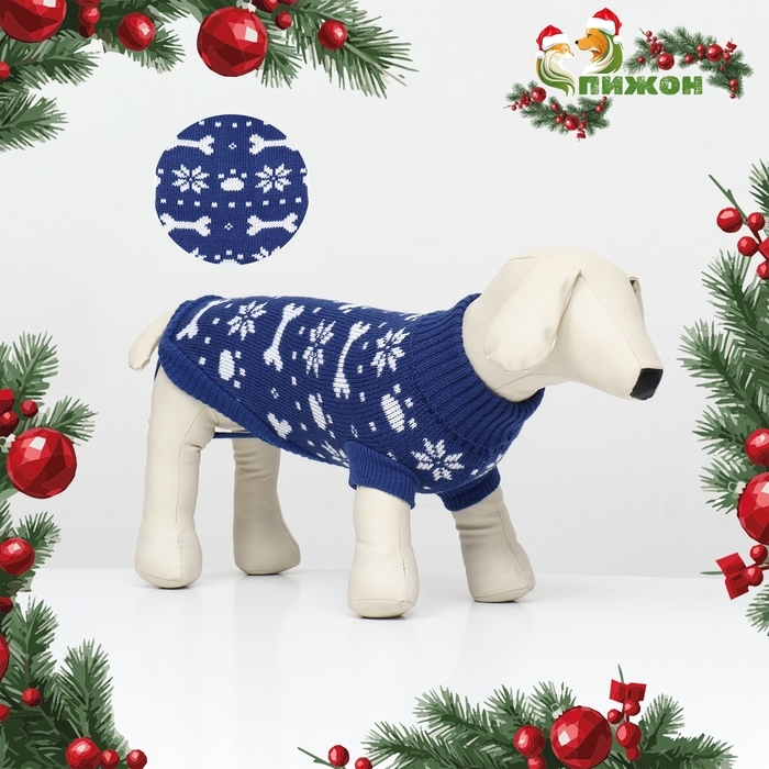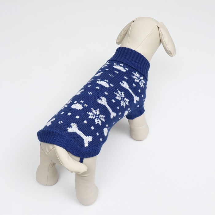 Свитер "Косточки-снежинки" для собак имеет уникальный новогодний дизайн, который придаст вашему питомцу особый вид во время праздников.
