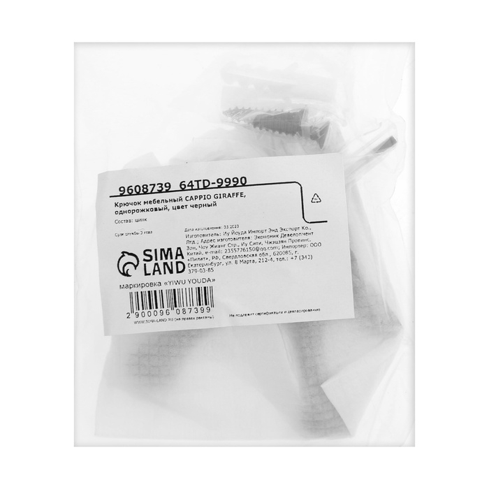 Крючок мебельный CAPPIO GIRAFFE, двухрожковый, черный