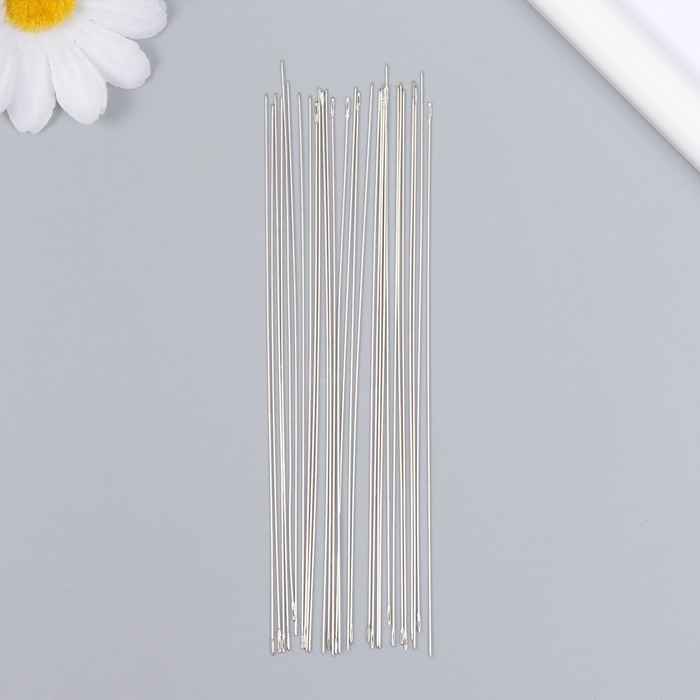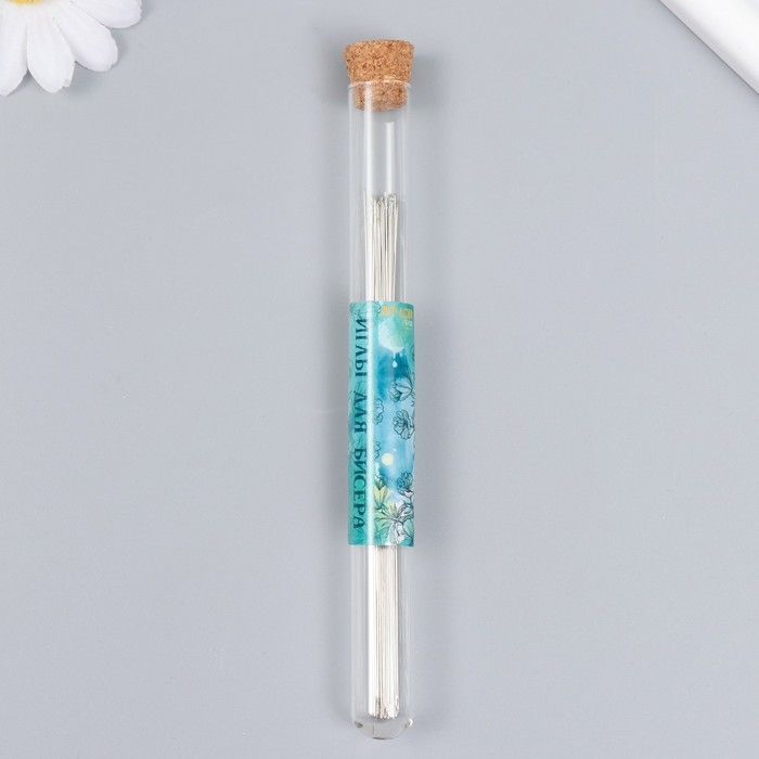 Иглы металл для бисера в стеклянной колбе тонкие набор 30 шт Ø 0,6х120 мм 1,5х1,5х14 см