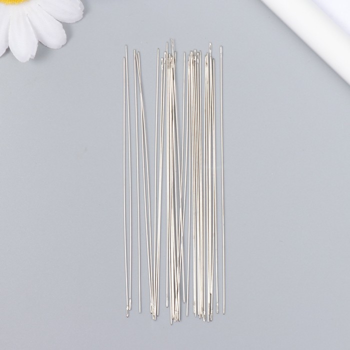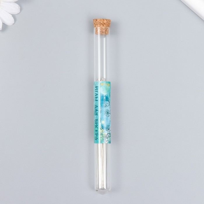Иглы металл для бисера в стеклянной колбе тонкие набор 30 шт Ø 0,45х100 мм 1,5х1,5х14 см