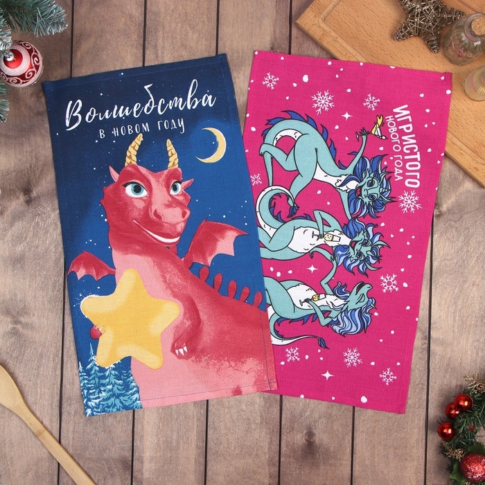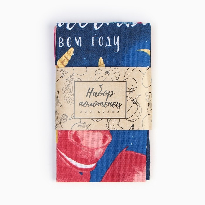 Новый год. Набор полотенец Доляна "Игристого нового года" 28х46 см - 2 шт, 100% хл, рогожка 164 г/м2