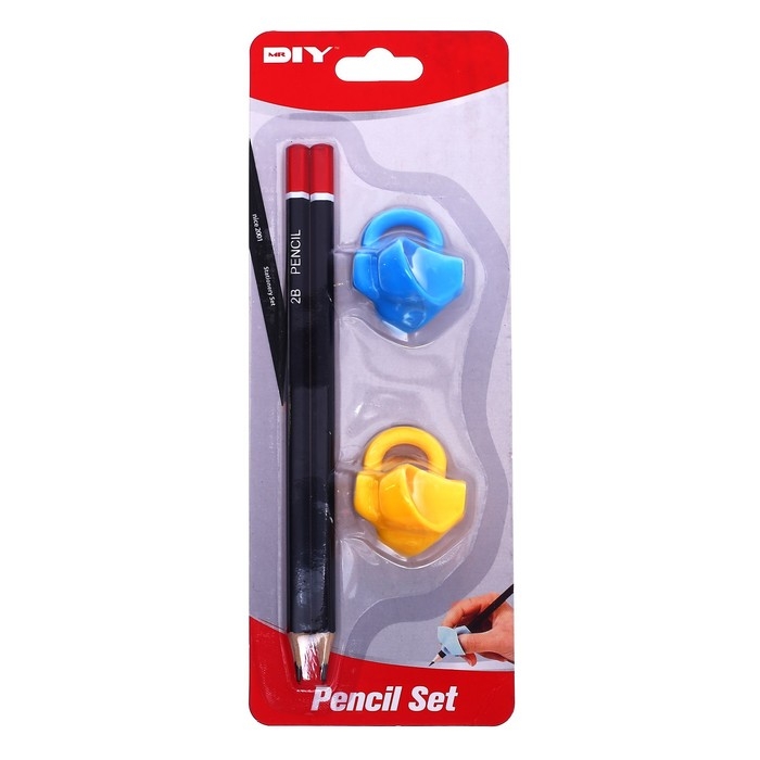Набор канцелярский, 2 чернографитных карандаша, 2 насадки-тренажера для исправления техники письма, МИКС