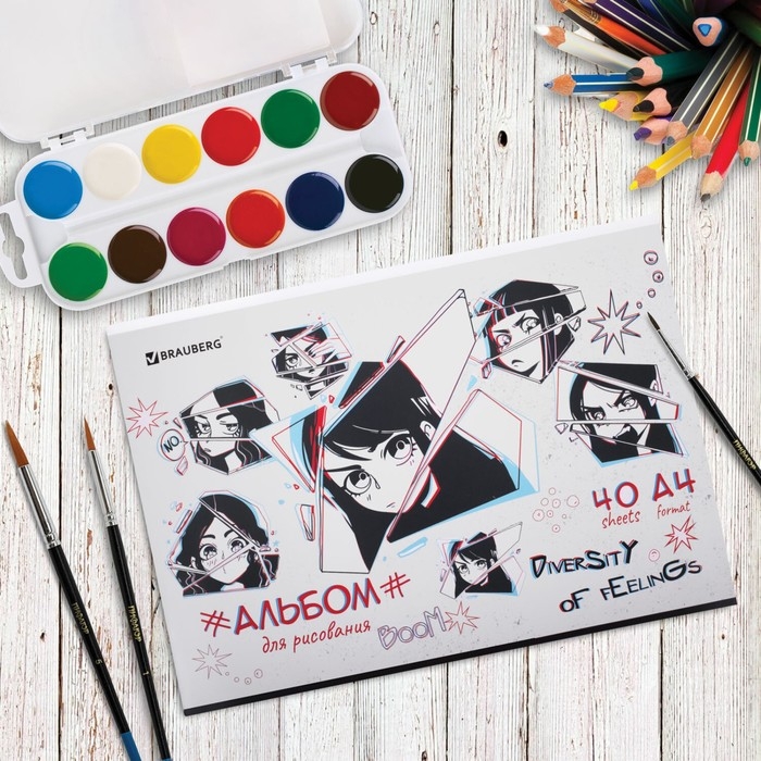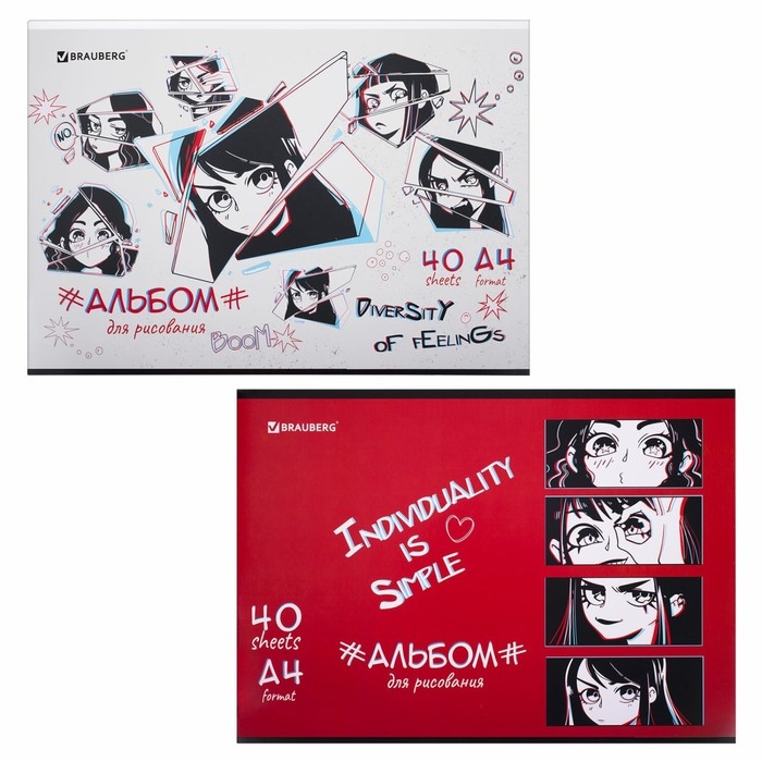 Альбом для рисования А4, 40 листов, на скрепке, BRAUBERG "Аниме", обложка мелованный картон, блок 100 м/г2, МИКС