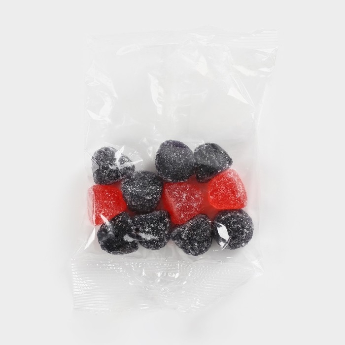 Состав: глюкозный сироп, сахар, агент желирующий: желатин, регулятор кислотности: лимонная кислота (Е330), молочная кислота (Е270), ароматизаторы: малина, ежевика, барбарис, красители пищевые: кармуазин (Е122), понсо 4R (Е124), индигокармин (Е132), чёрный блестящий PN (Е151), глазирователь: растительное масло, карнаубский воск.