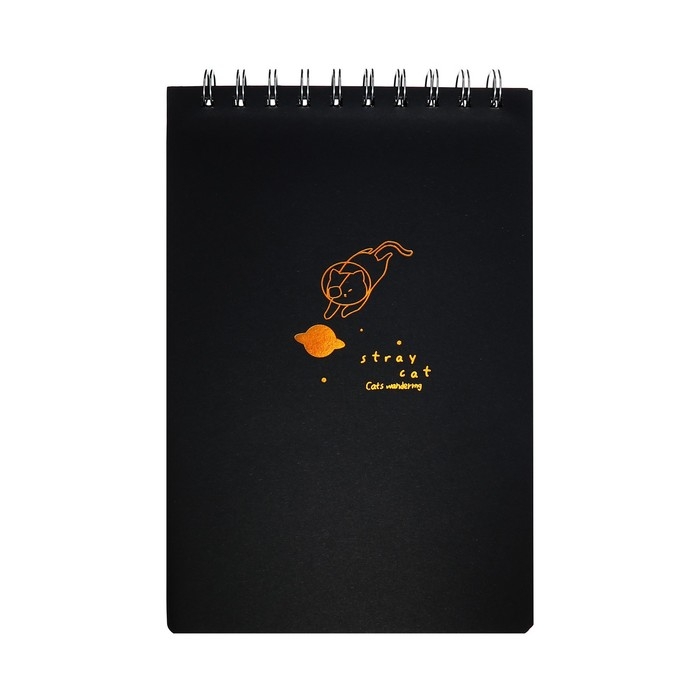 Скетчбук А5, 30 черных листов на гребне, "Кот", твердая подложка, плотность 110 гр., МИКС