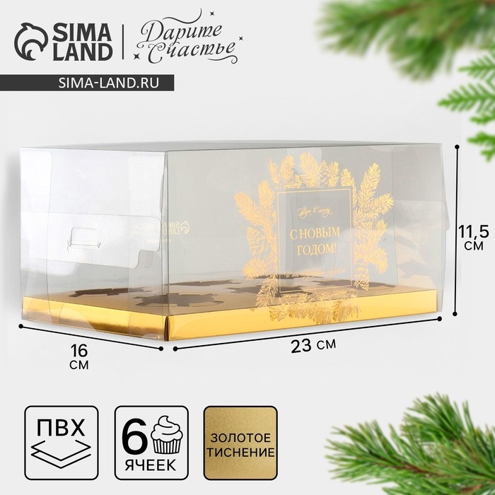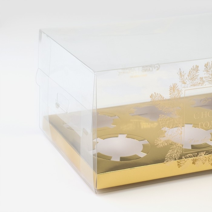 Коробка для капкейка «Верь в мечту», золото, 23 х 16 х 11.5 см, Новый год