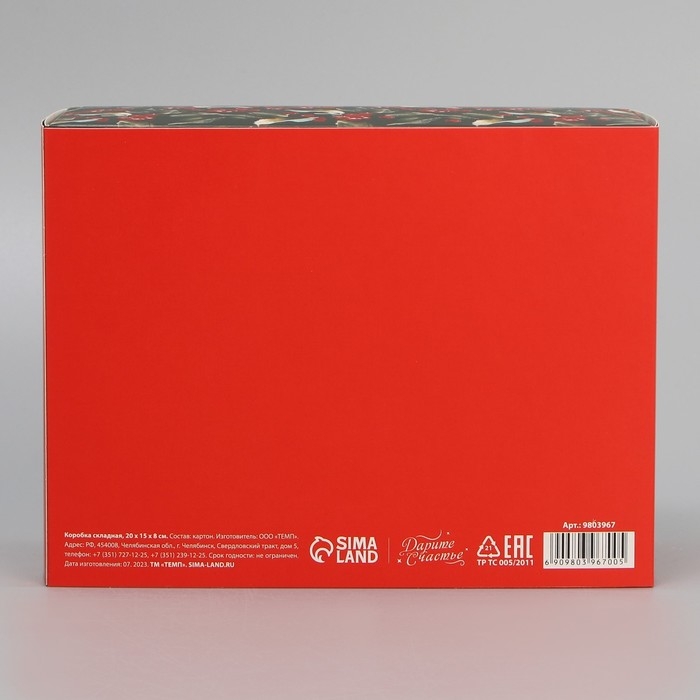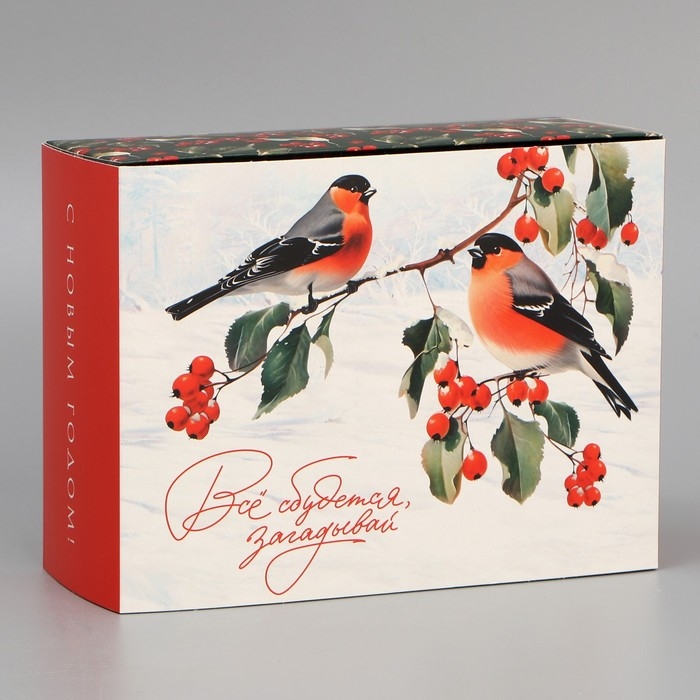 Коробка подарочная новогодняя складная «Снегири», 20 х 15 х 8 см, Новый год