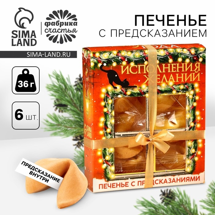 Печенье с предсказаниями в коробке «Исполнения желаний», 6 шт.,