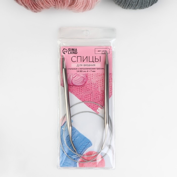 Спицы круговые, для вязания, с металлическим тросом, d = 7 мм, 14/80 см
