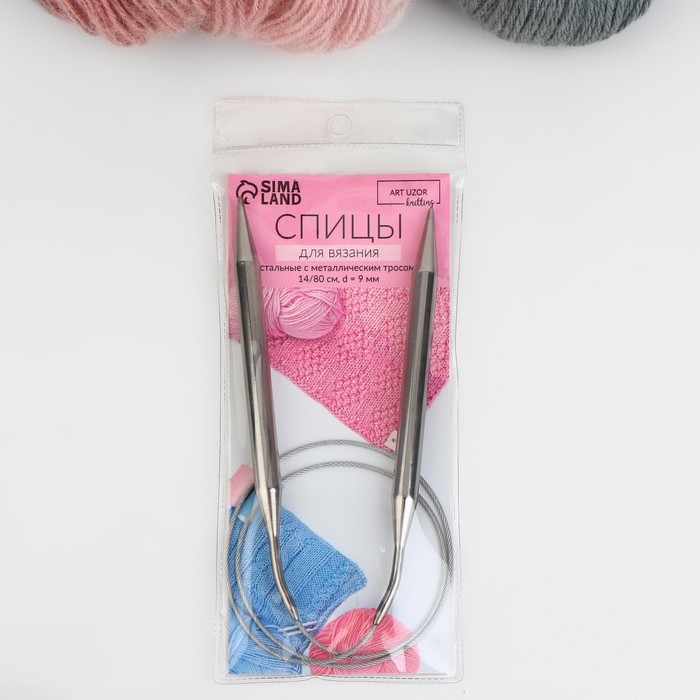 Спицы круговые, для вязания, с металлическим тросом, d = 9 мм, 14/80 см