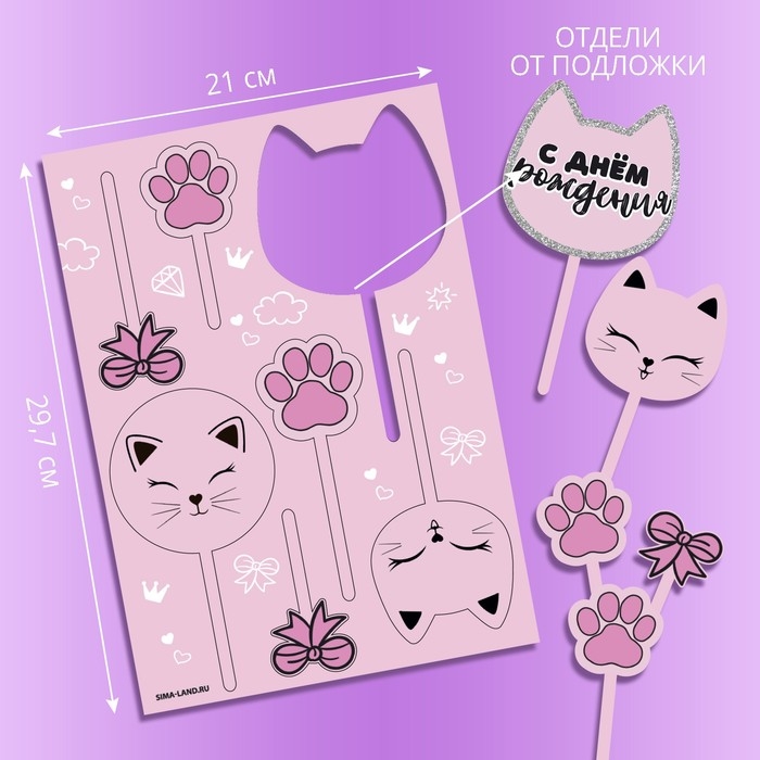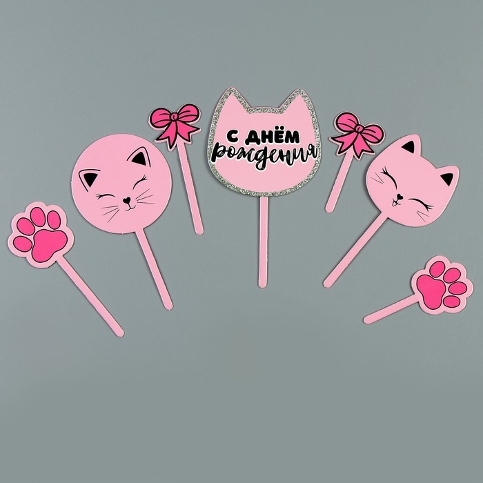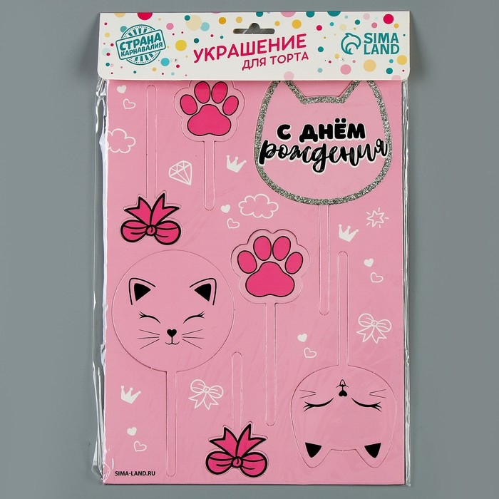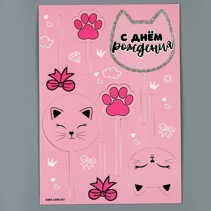 Топпер для торта «С днём рождения», котики