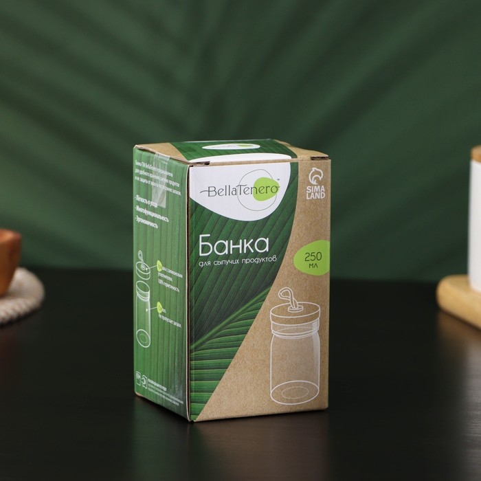 Банка стеклянная для хранения сыпучих продуктов BellaTenero «Эко», 250 мл, 6,5×12 см, с бамбуковой крышкой