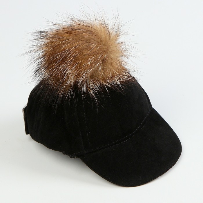 Кепка для кукол с меховым помпоном, цвет чёрный