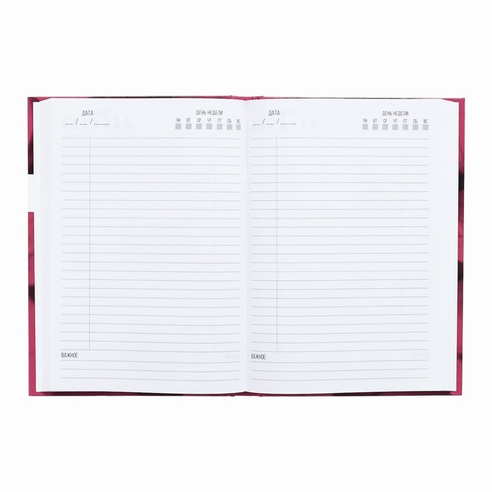 Недатированный ежедневник вы сами проставляете даты своих дел. Вам не обязательно прописывать в нем каждый день, вы можете использовать эти дни для дополнительных записей и примечаний к тем дням, в которые у вас все довольно плотно забито.