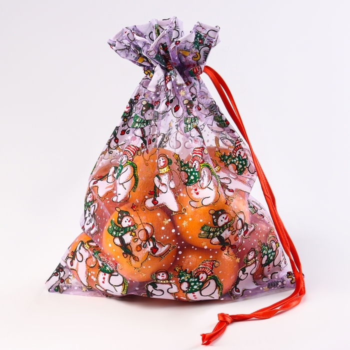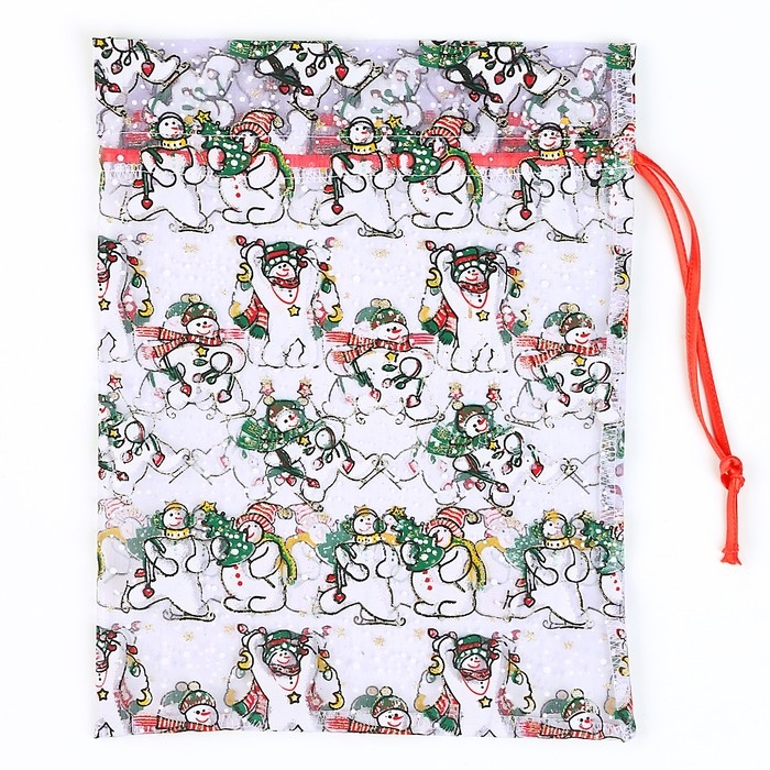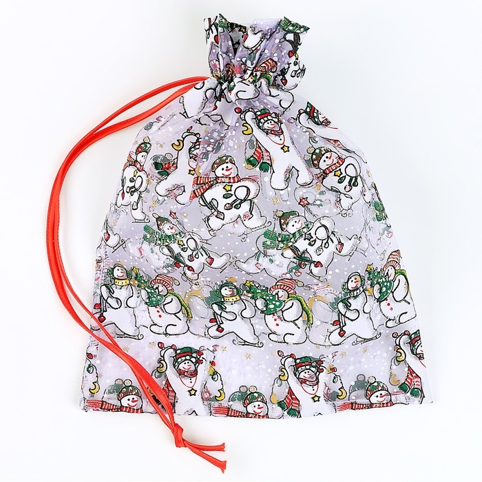 Новый год! Мешок подарочный «Снеговики с ёлками», р. 25 × 32 см, органза