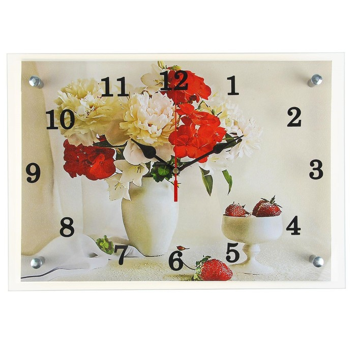 Часы-картина настенные, интерьерные "Цветы в вазе", бесшумные, 25 х 35 см