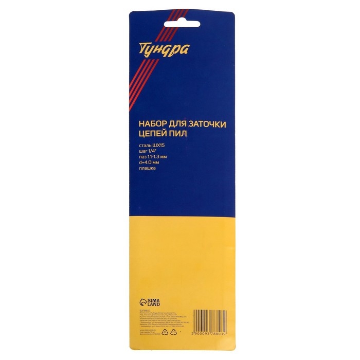 Набор для заточки цепей пил ТУНДРА, сталь ШХ15, шаг 1/4", паз 1.1-1.3 мм, d=4.0 мм, плашка