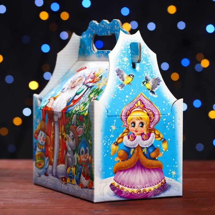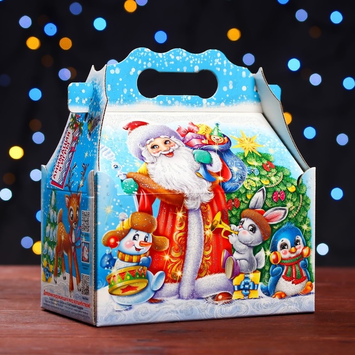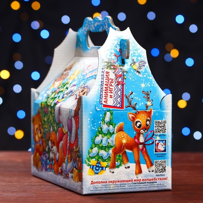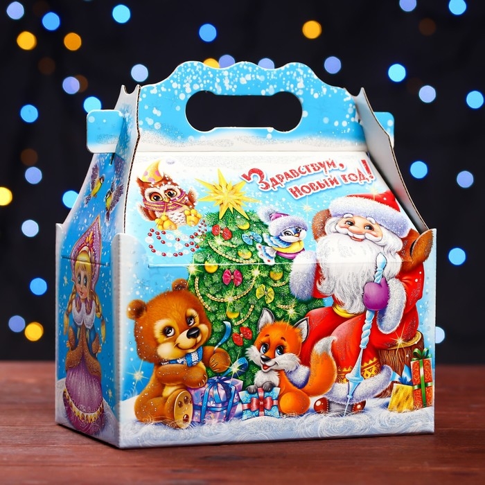 Новый год. Подарочная коробка "Праздник у зверят" , ларец 20 х 12 х 17 см.