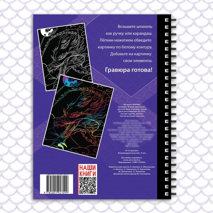 Гравюры «В мире драконов» созданы для самых настоящих фанатов сказочных животных и стиля аниме. Чтобы сделать гравюру, нужно просто стирать верхний слой пластиковым штихелем.